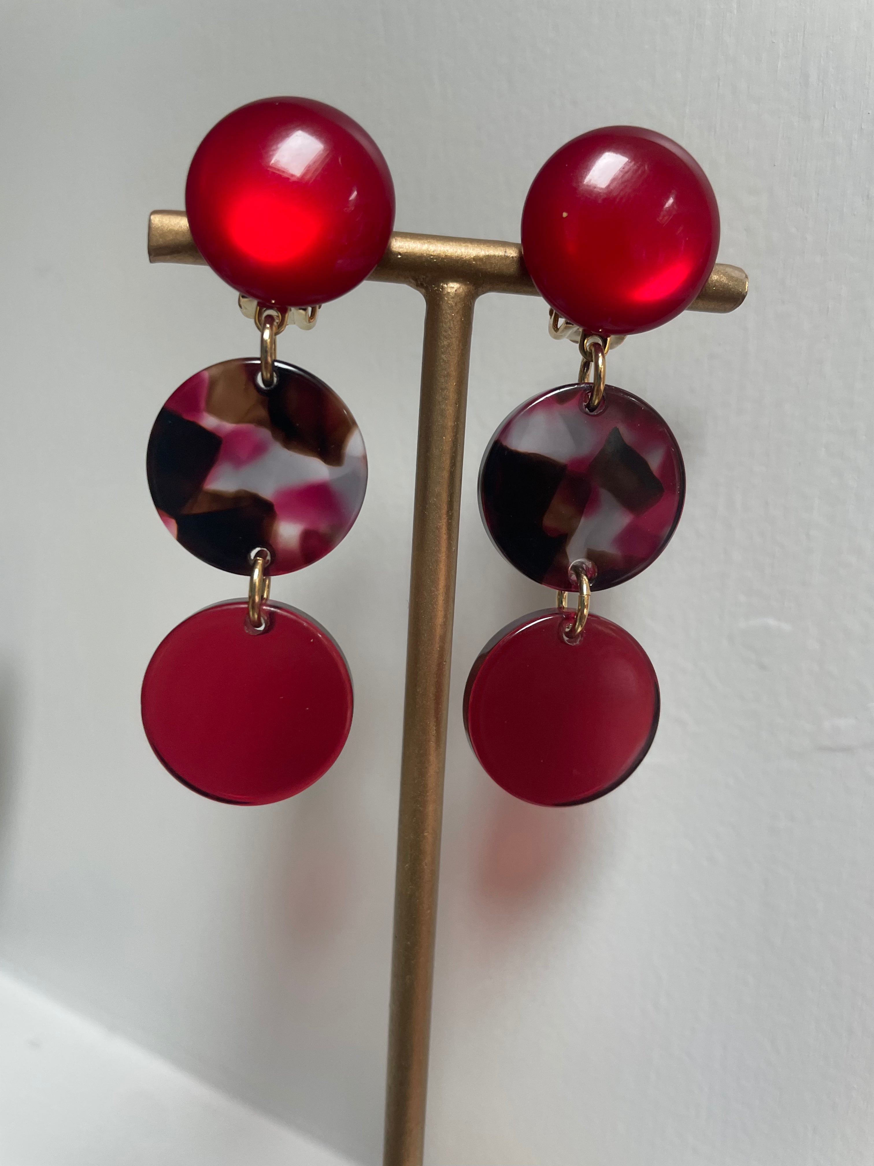 Clip on earrings made of acetate of cellulose and resin which looks like marble. The earring clip has a beautiful iridescent green gold and red effect. Made with gold plated elements