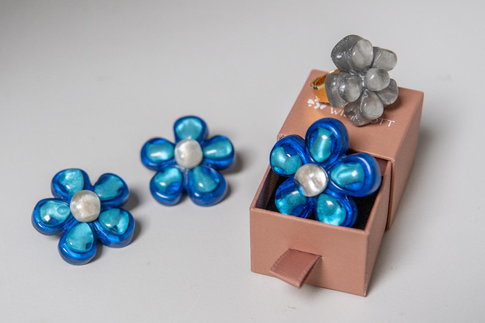 made from artisanal resin, gold and mother of pearl powder combined with gold plate on brass elements.