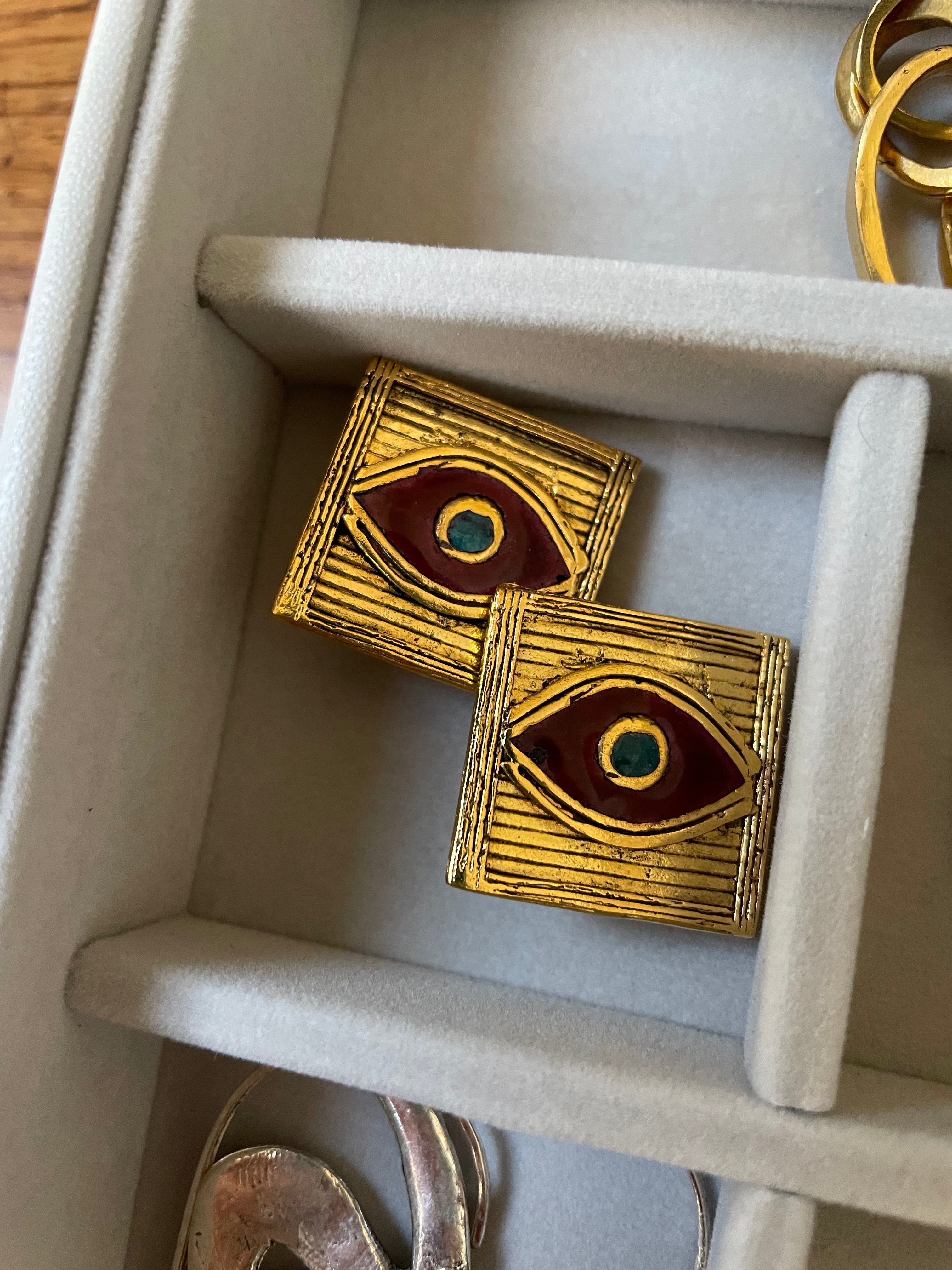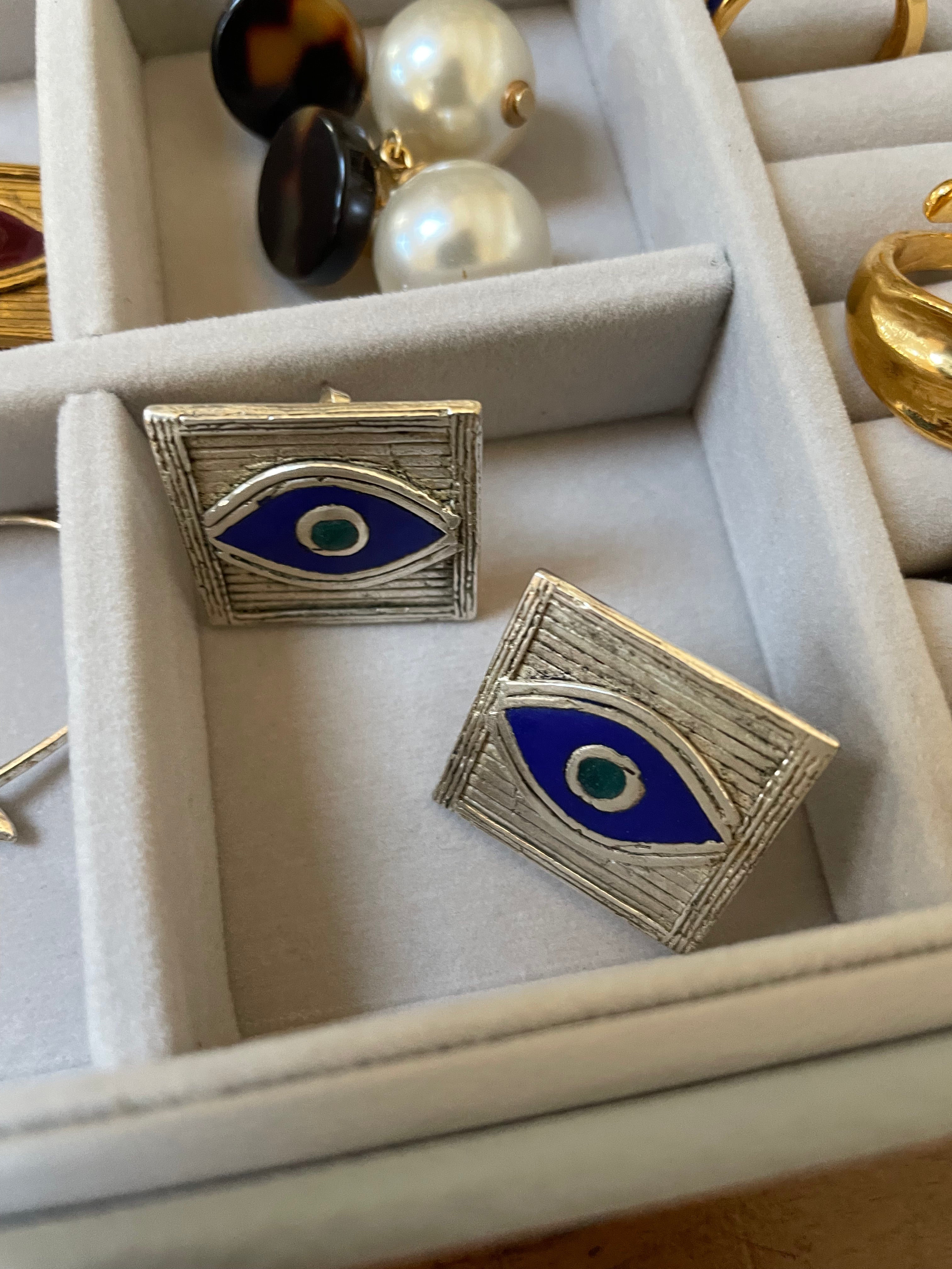 Amazing earrings with beautiful enamel shape, available in silver or gold on bronze with a post or clip ons.
