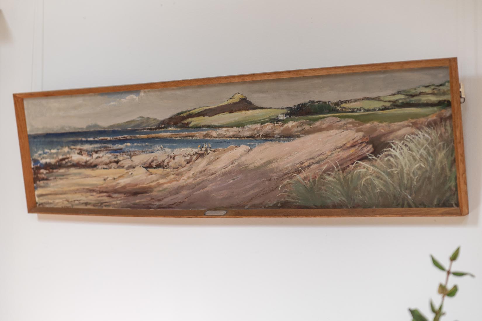 This evocative oil painting on board, titled Looking Towards Portencross, captures the tranquil beauty of the Scottish coastline with expressive brushwork and a soft, natural palette. Signed by the artist A. Stewart, the composition gently leads the eye toward the shoreline at Portencross, with its peaceful waters and distant landforms rendered in a harmonious blend of light and texture. Portencross is a Hamlet near Garland Head in North Ayrshire Scotland.